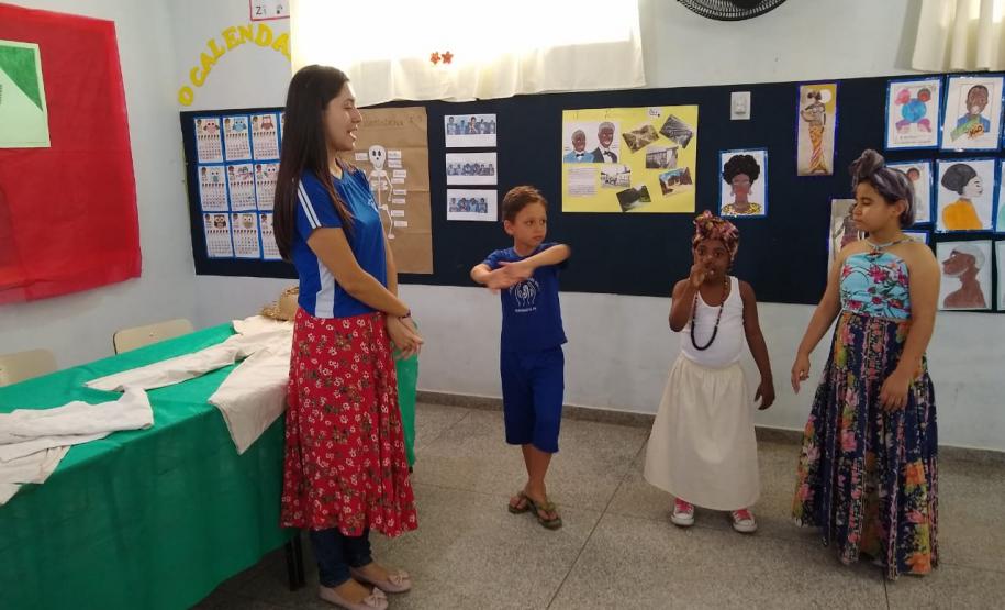 Também marcando presença na Semana da Cultura Afro, a Escola Bilíngue em Libras, Nydia Moreira Garcez fez um trabalho lindo com as crianças, que apresentaram seus trabalhos na sua língua materna, Libras.