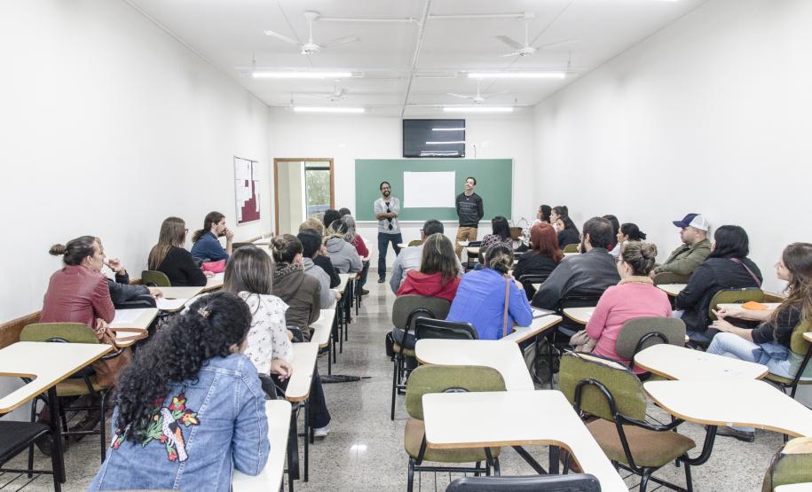 Durante a tarde, os grupos seguiram para as oficinas, ministradas pelos professores e bolsistas da UFPR Litoral, CEM e MADE.